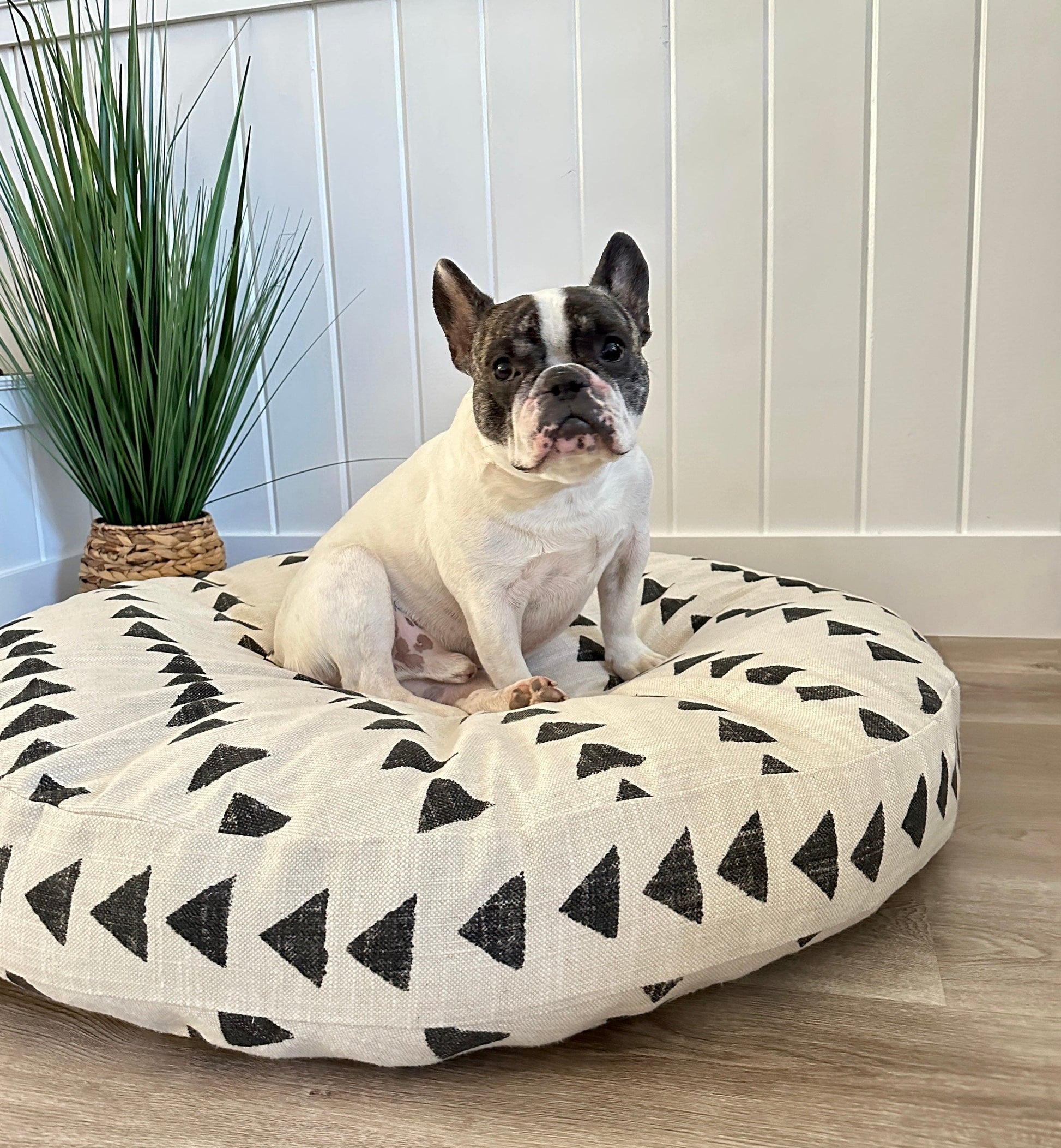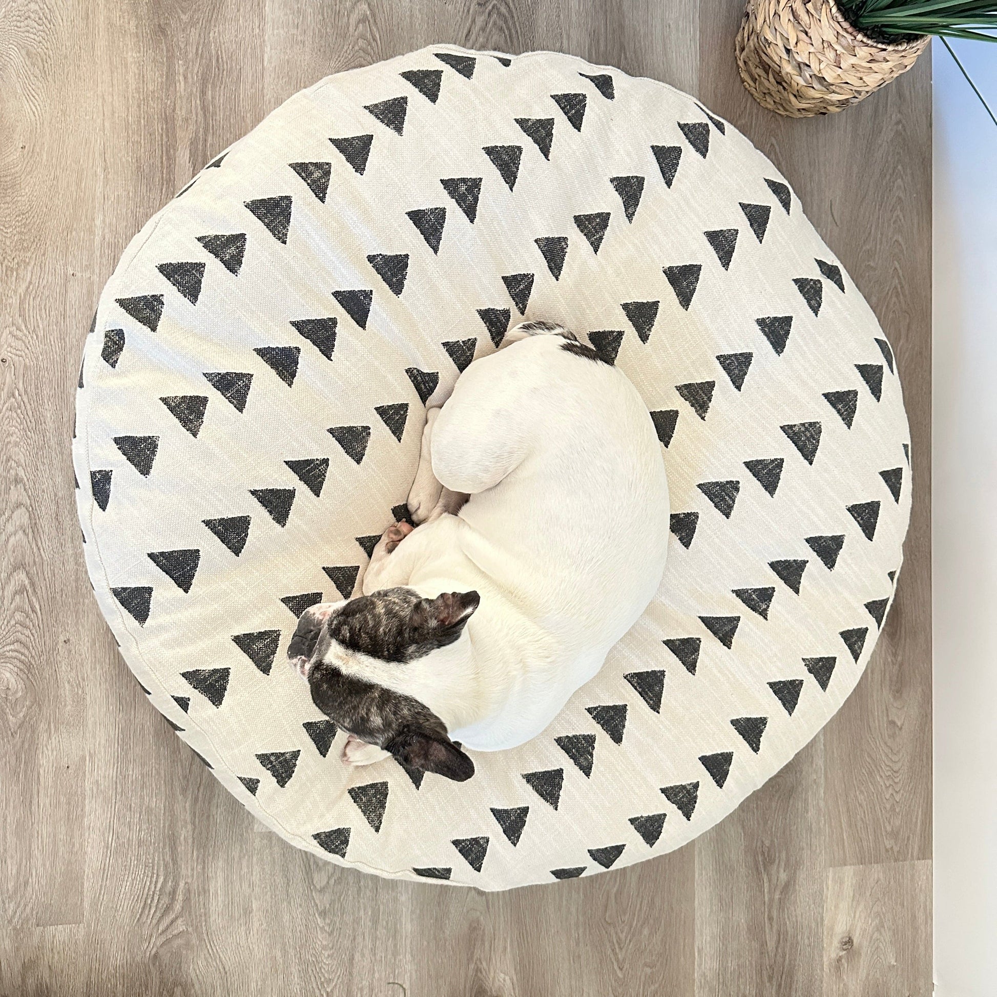 Our Boho Round Dog Bed is made from an upholstery grade fabric like you would find on your own furniture at home. Each pet bed is handmade in California and is washable, durable, and easy clean. It will fit perfectly with your home décor, expressing your's and your pet’s personal style. Stuff with one of our Sustainable or Memory Foam Inserts or you can use your own textiles like standard bed pillows, old sheets, towels, or old dog beds, pups love their human's scent so stuffing with your own fill can reduce anxiety and make them think of you!