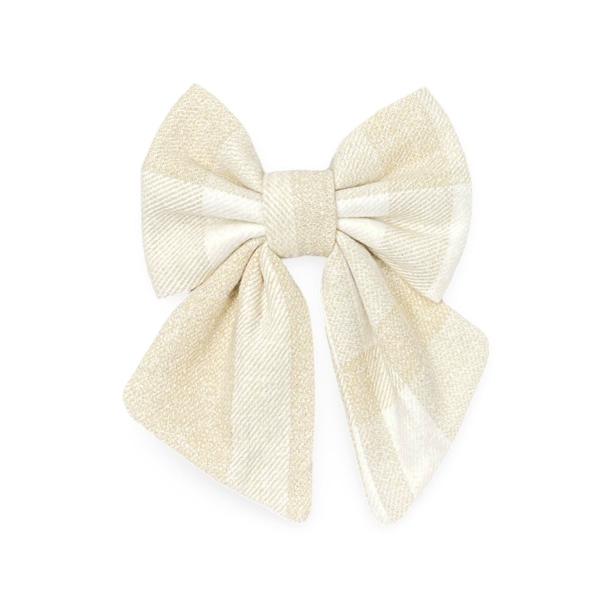 Add some holiday flair to your furry companion's outfit with this festive cream check fancy dog bow. Crafted from cozy flannel, it will elevate their look with a touch of elegance.