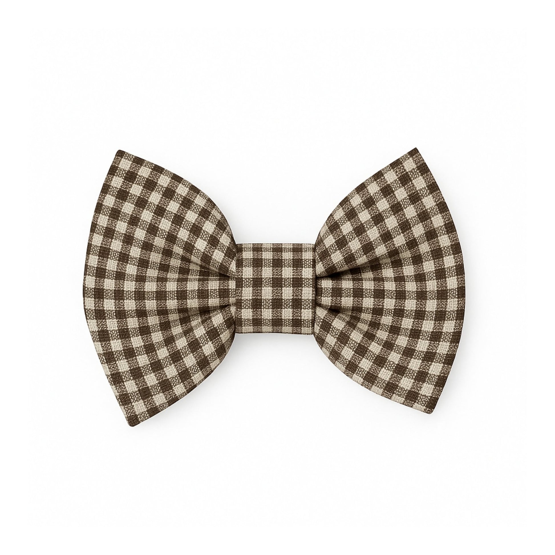 Add instant style to your pet with this Chocolate Gingham Bow. The secure double elastic design keeps it firmly in place on any collar, while the classic plaid pattern works for holidays, special events, or everyday wear. Ideal for dogs and cats who deserve a polished look.