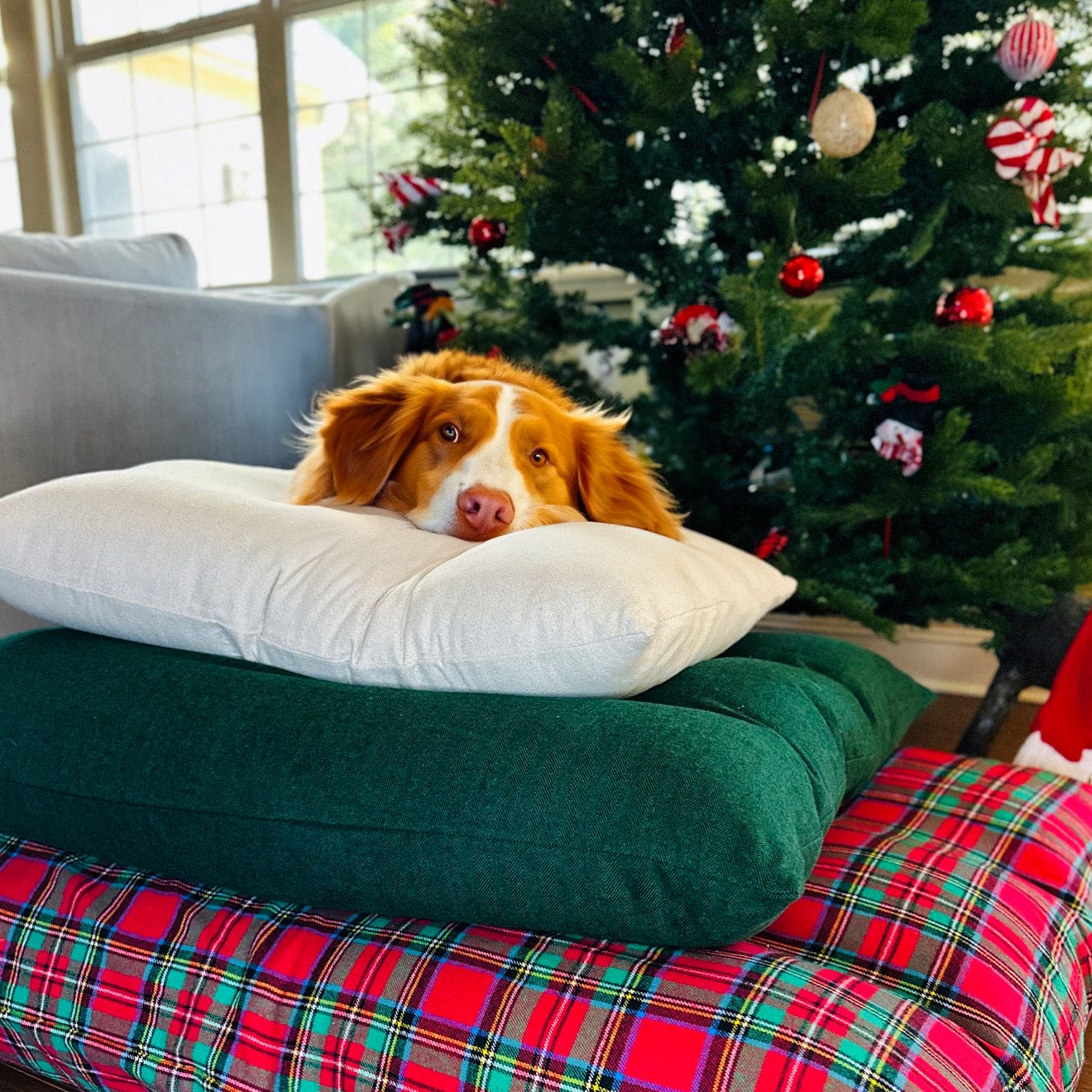 Our Holiday Flannel Dog Beds are made from luxury soft flannel fabric with the option of a timeless herringbone designs or a gorgeous holiday tartan print Each pet bed cover is handmade in California and is washable, durable, and easy clean. It will fit perfectly with your home décor, expressing your's and your pet’s personal style.