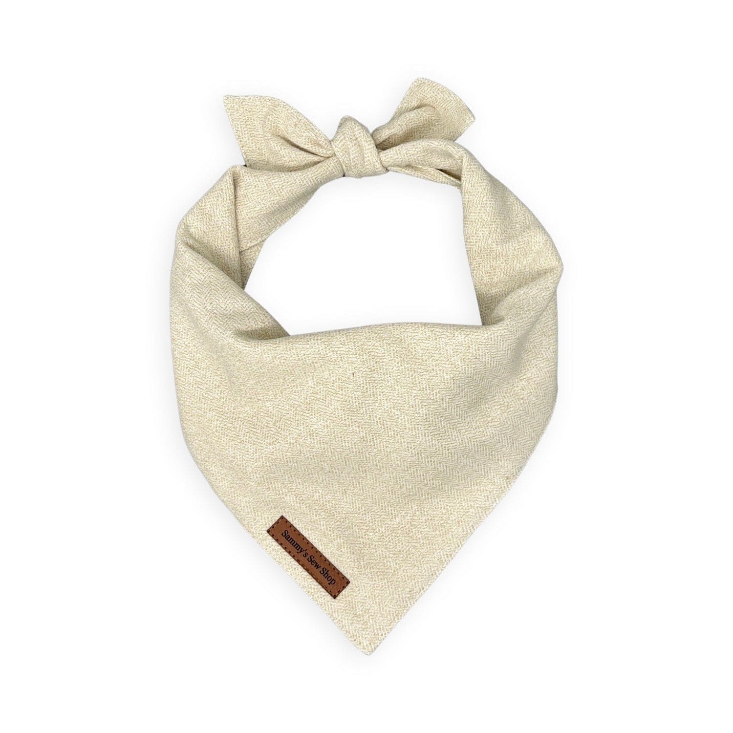 This exquisitely soft flannel dog bandana features a beautiful herringbone pattern on a cream colored Flannel. The perfect accessory to elevate your pup's fashion game! Every bandana is handmade in California and features a unique shape to reduce unwanted bulking around the neck, for that 'just so' look!