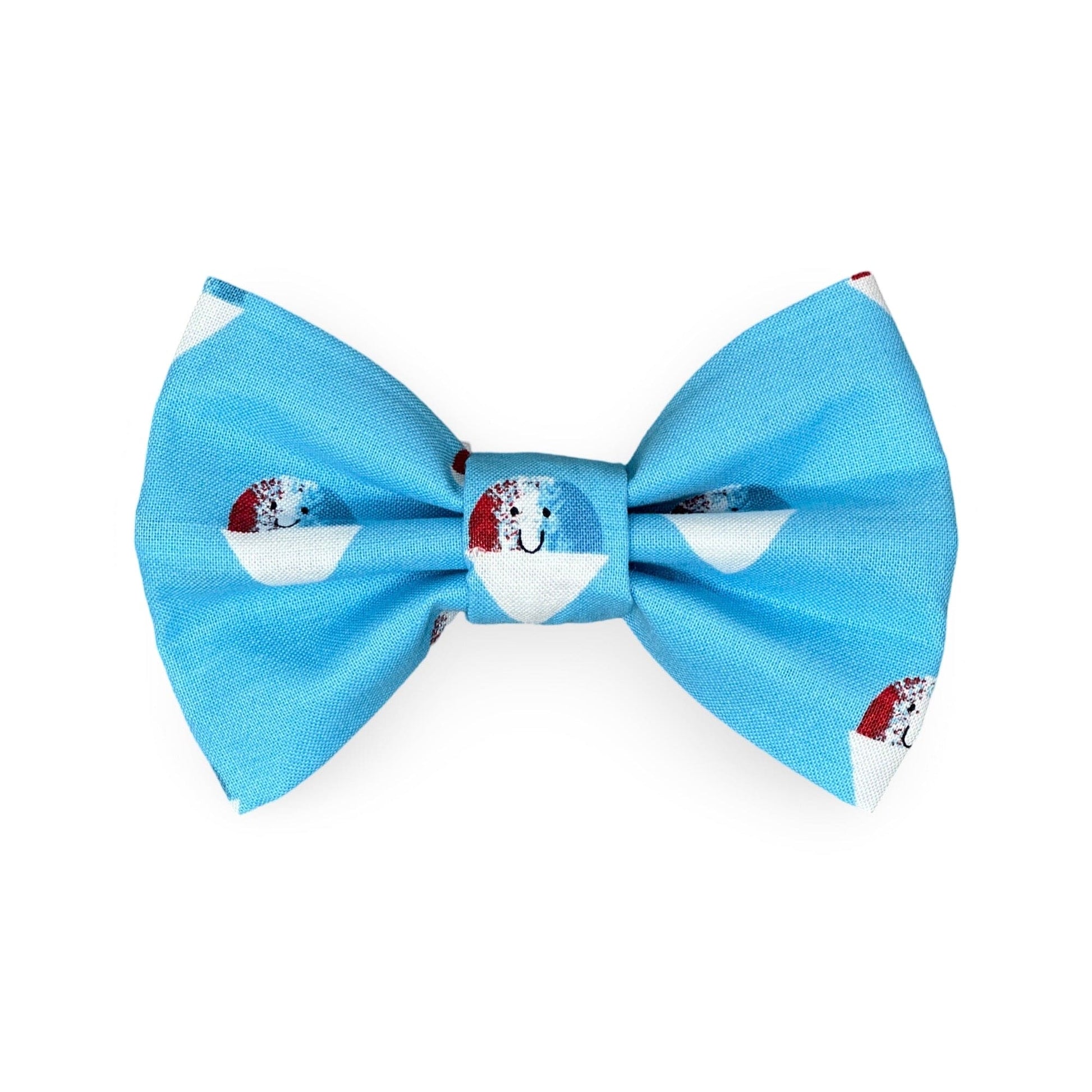 Cool down with our 'Frostie Feedom' dog bow tie! Featuring red, white, and blue snow cones, this fun accessory is perfect for any patriotic pup. Let your furry friend chill in style at all the summer celebrations!