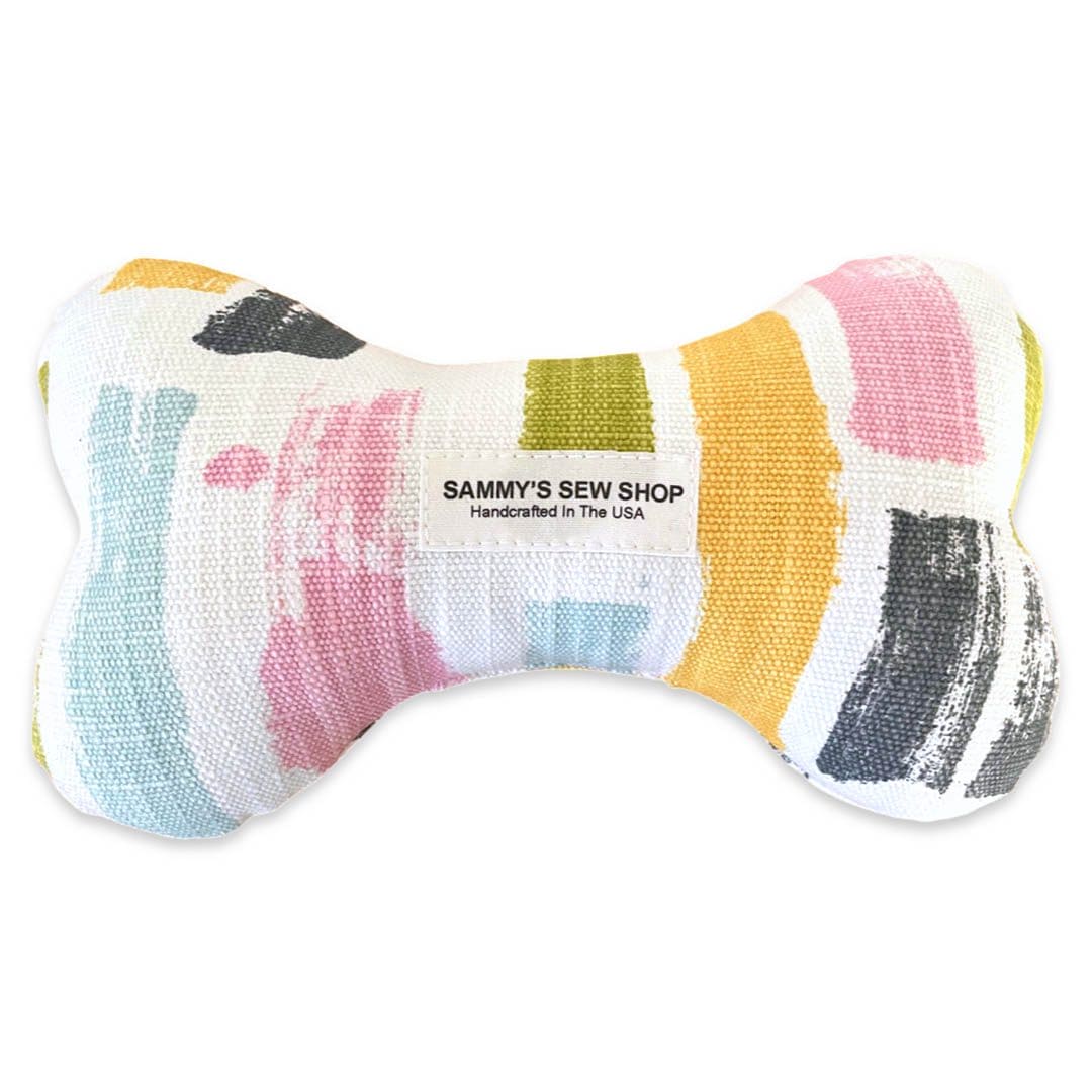 Playtime never looked so good! The Celebrate Dog Bone Toy features a fun and colorful pattern, and is 100% USA made with sustainable materials, upholstery grade fabric, and a puncture proof squeaker for hours and hours of fun! Makes a great dog gift!