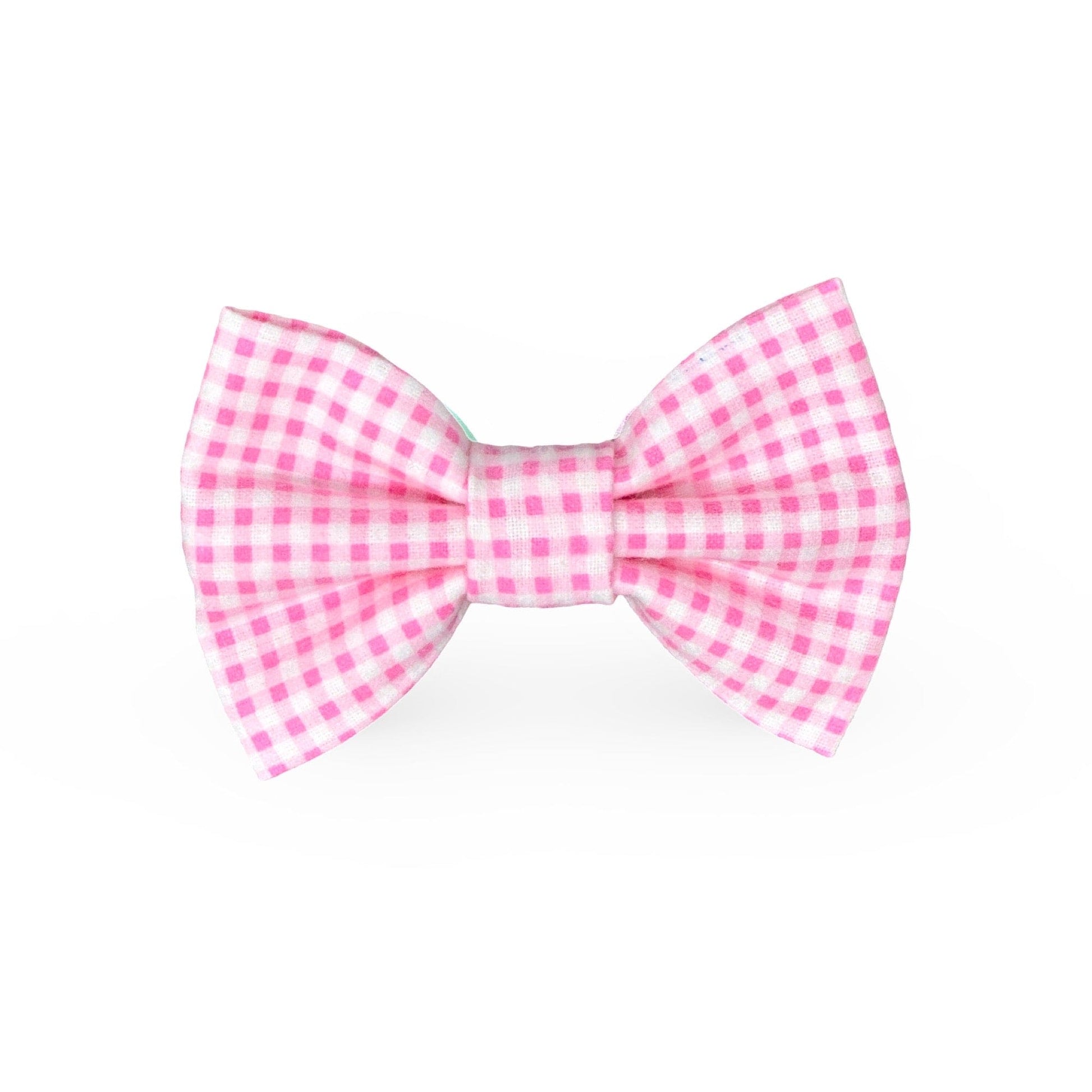 Make your furry friend's outfit pop with this Pink Gingham Pet Bow Tie! Handmade in the USA, it's the perfect addition to any stylish pup's wardrobe. Available in four sizes and with elastic loops to avoid bow drooping, it's a must-have for any fashion-forward pet.