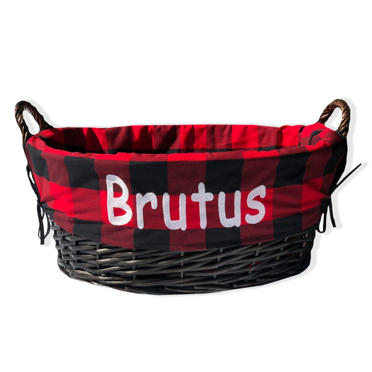 -Personalize with any 1-line of text and select your preferred embroidery color. Upholstery fabric liners adjust and interchange via tie closures, providing a secure fit. This 19"L x 16"W x 10H"D basket is supplied with multiple liners; change them out to best complement your home decor. This purchase includes a wicker basket that may be customized through our product designer.