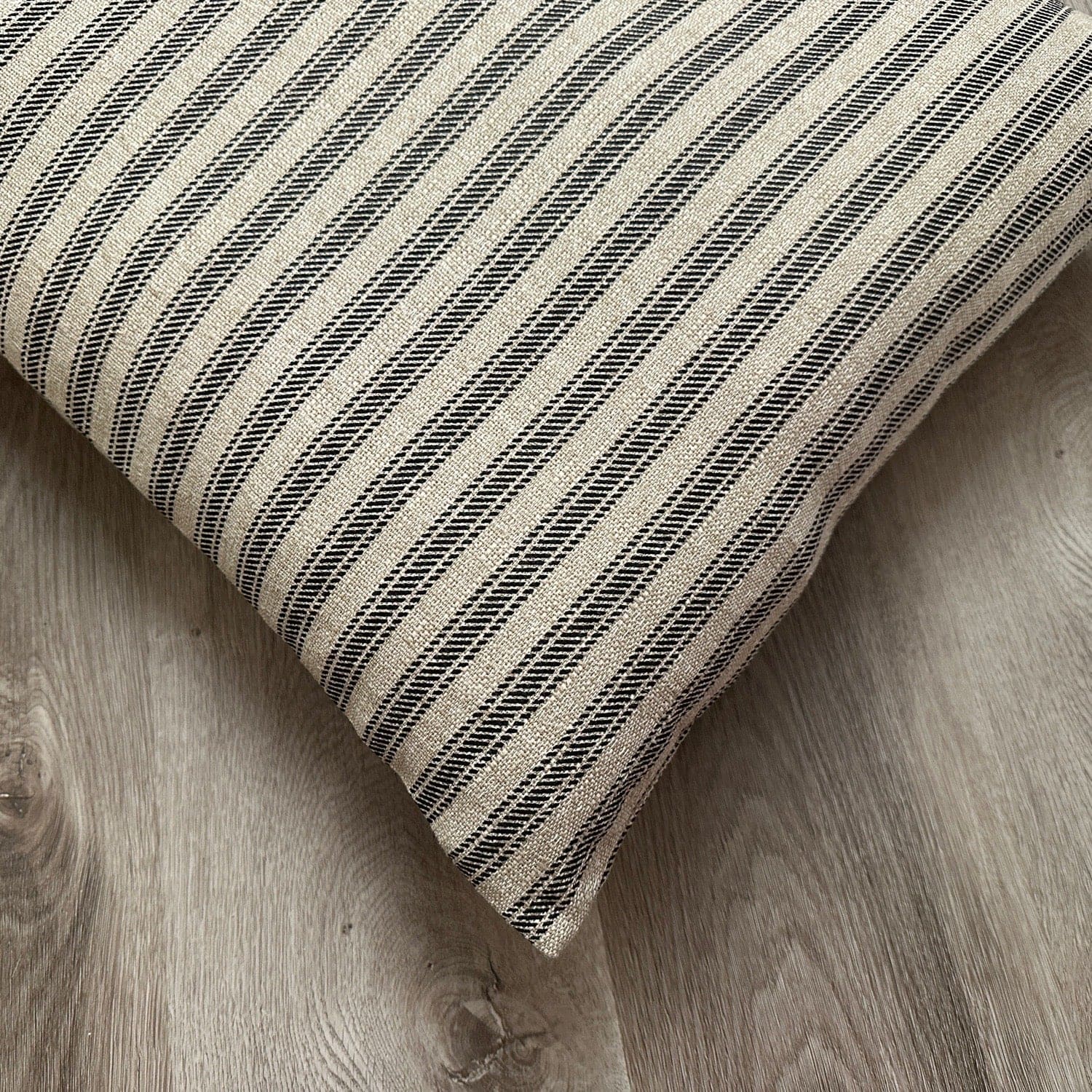 The Ticking Stripe Dog Bed is crafted from upholstery-grade fabric, echoing the sophistication of your furnishings. Handmade in California, these washable and durable covers are effortlessly chic. Elevate your home décor and showcase your pet's style!  Need a custom size? Message us! Personalize with your pet’s name for free!