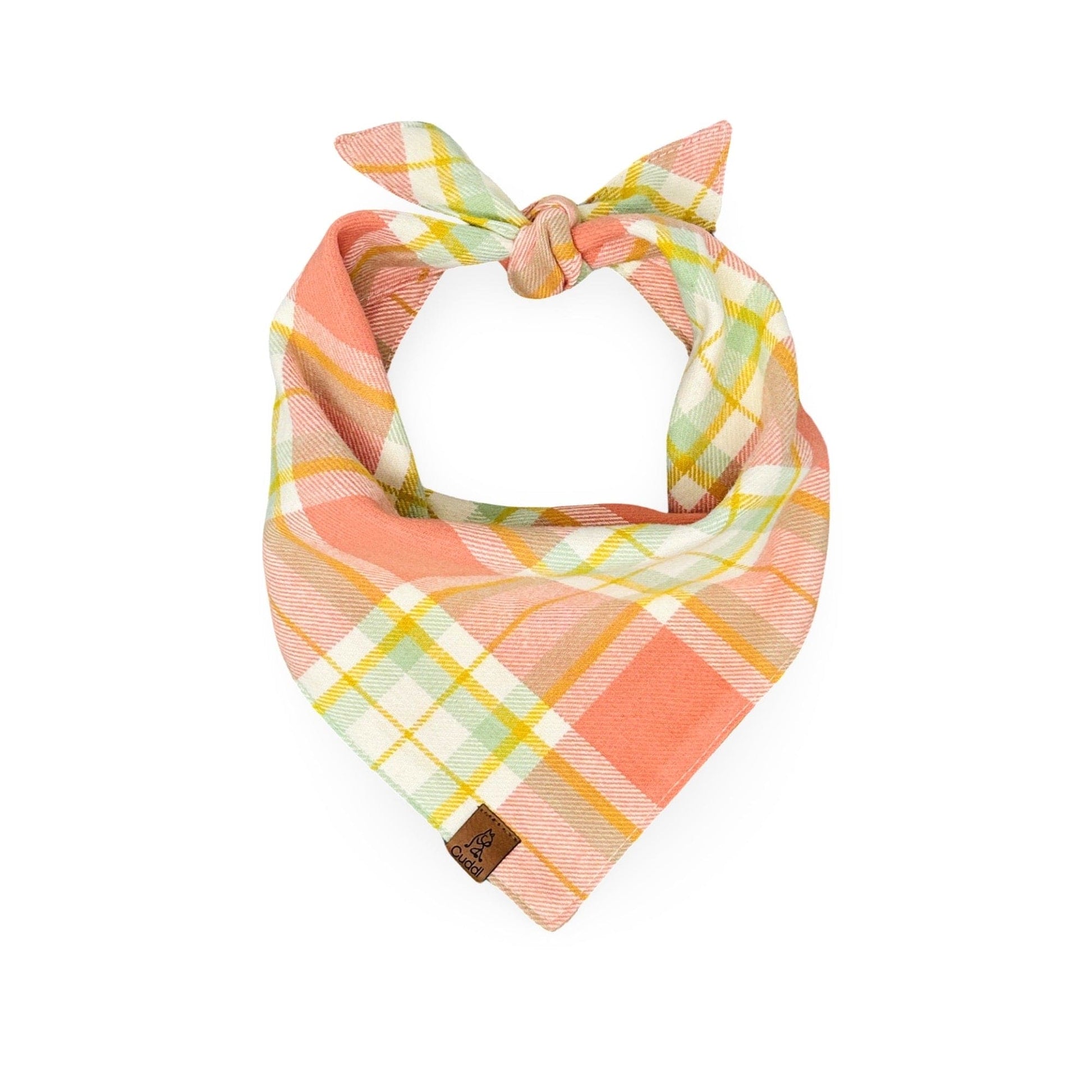 The Tulip Grove Dog Bandana, adorned with gentle hues of pinks, greens, yellows, and creams, making it the ideal accessory for Easter or springtime outings. Crafted to perfection, this bandana is soft to the touch, ensuring your furry friend's comfort. Let your pup shine with the essence of spring in every step!